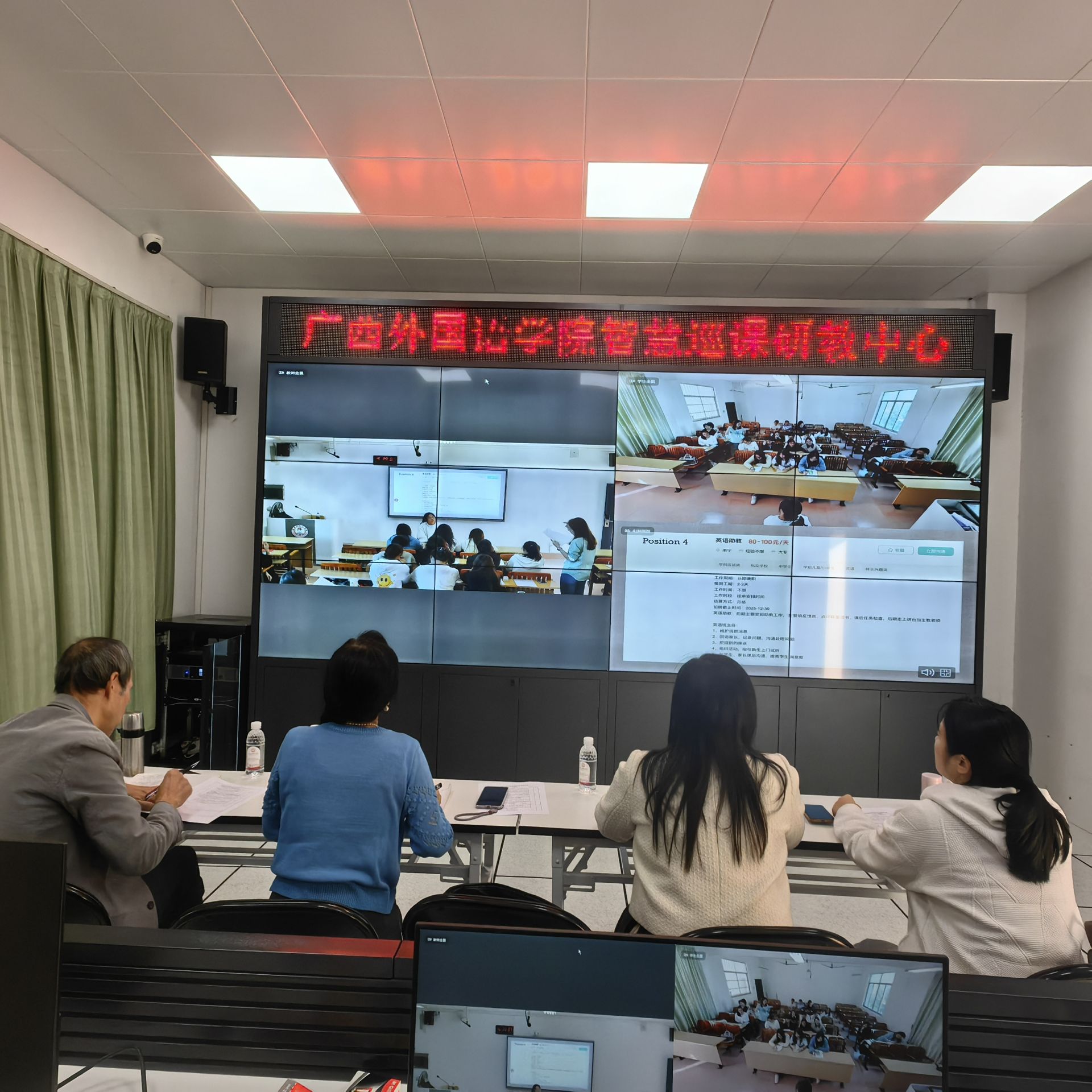 智慧巡课研教中心内,巨大的电子屏幕实时呈现着多个教学现场的直播画面。学院教学督导组成员齐聚一堂,通过先进的智慧教学平台,无需亲临教室,即可“屏对屏”地观摩了覆盖不同专业、多位教师的线上或线上线下混合式课堂教学实况。督导们神情专注,时而详细记录,时而低声交流,重点关注教师的教学内容设计、课堂互动组织、信息化手段运用以及学生的实时参与度和反馈。