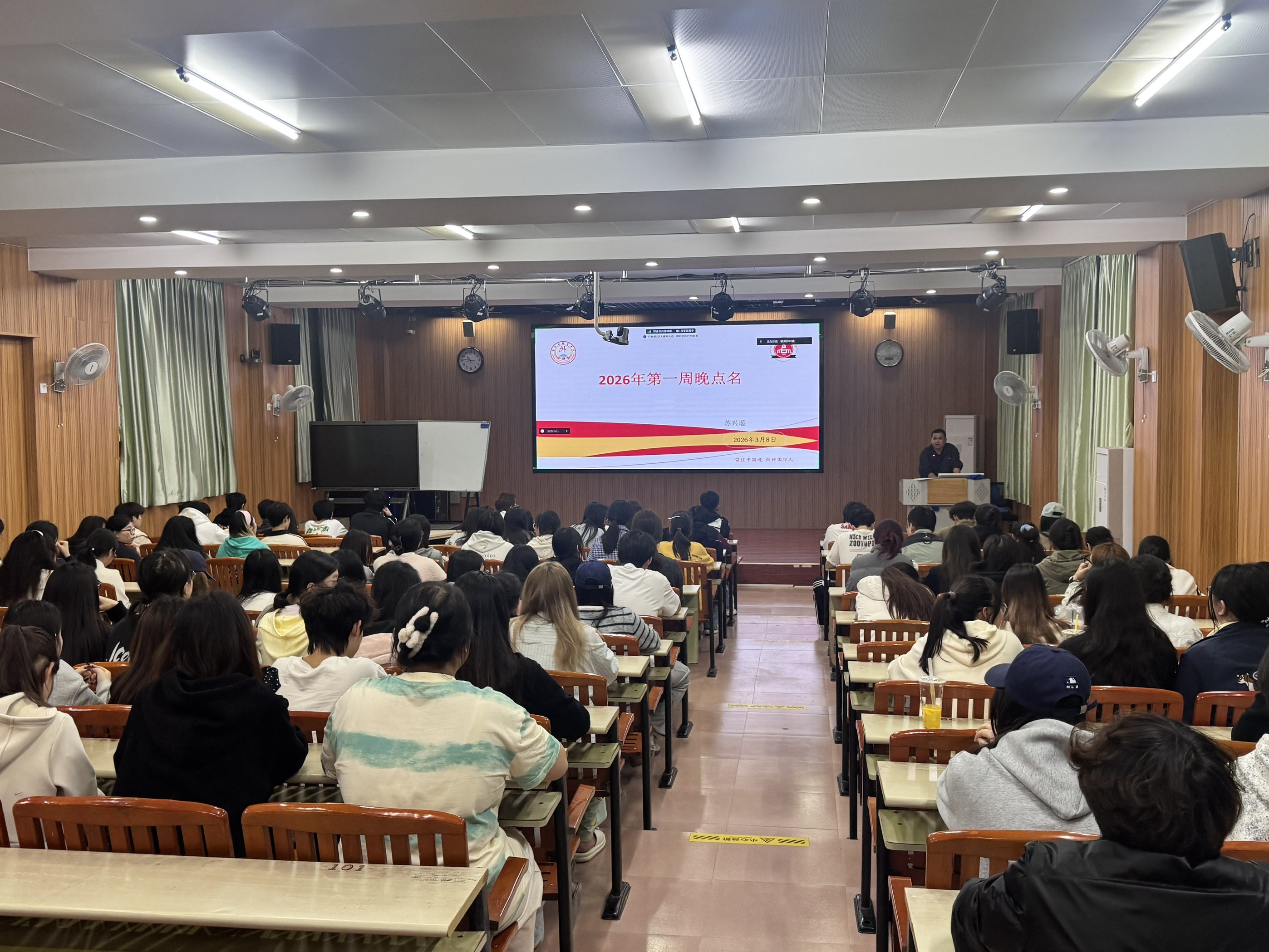 3月8日晚,欧美语言文化学院各年级辅导员分别组织召开了新学期首次晚点名活动。活动现场,辅导员们逐一核对学生返校情况,重点关注未按时返校学生的动态,确保第一时间掌握学生去向。在点名基础上,辅导员们围绕新学期学习规划、校园安全、心理健康等方面进行了细致叮嘱,提醒同学们及时调整作息,以饱满的精神状态迎接新学期挑战。与此同时,各班级班主任结合专业特点和班级实际,组织召开了形式多样的主题班会。班会上,班主任们首先对上学期的学习情况进行了简要总结,肯定了同学们的努力与成绩,同时也指出了存在的不足。针对新学期课程安排、专业发展方向及未来就业前景,班主任们进行了深入解读,鼓励学生明确目标、合理规划。班会氛围活跃,师生互动频繁,有效增强了班级凝聚力,也为新学期学风建设注入了动力。
