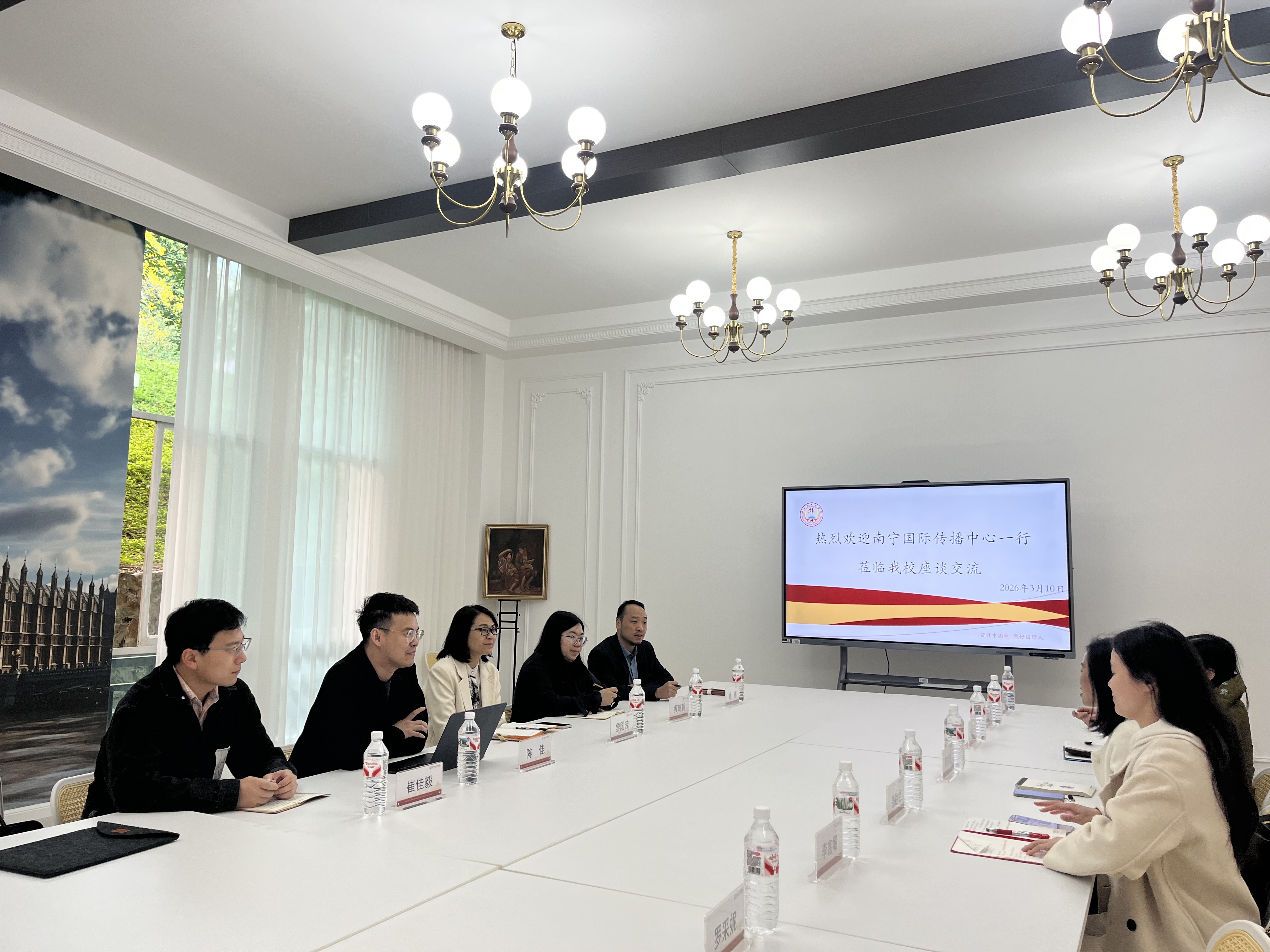 3月10日上午,南宁国际传播中心一行到访广西外国语学院五合校区英国馆,与欧美语言文化学院、东南亚语言文化学院及国际传媒学院的相关负责人进行座谈交流。双方围绕国际传播人才培养、多语种内容生产及产学研协同创新等议题展开深入探讨,旨在进一步夯实合作基础,共同服务地方国际传播能力建设。欧美语言文化学院副院长姚康主持会议。