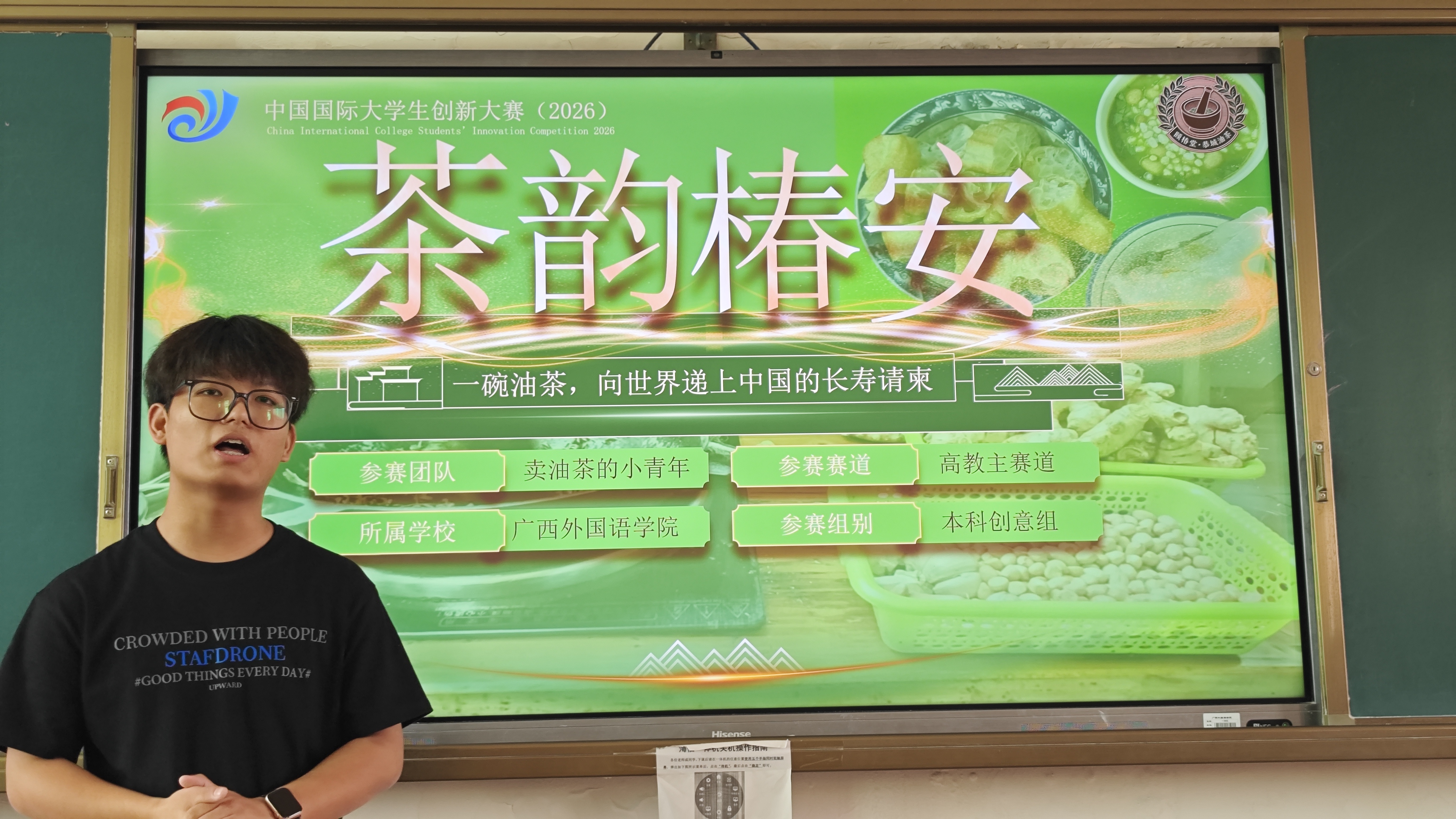 在本次参赛项目中,多个团队立足区域文化资源与现实社会需求,形成了具有较强创新性与实践导向的项目。其中,“茶韵椿安”项目以广西恭城油茶这一非物质文化遗产为核心,聚焦银发经济与健康消费趋势,通过对传统油茶制作工艺的现代化改良,开发出便携化、标准化的即饮产品体系。项目在保留传统风味与养生价值的基础上,创新采用浓缩与冻干工艺,实现“一泡即享”的产品形态,并针对老年群体优化口感与健康属性,构建“非遗+康养+产业融合”的发展模式,在推动非遗活态传承的同时,探索文化产业服务老龄社会的新路径;“蓝绣壮韵”项目则以河池市天峨县蓝衣壮绣非遗技艺为依托,围绕产业发展中的生产低效、产品单一及文旅融合不足等问题,创新提出“非遗工坊+文旅融合+技能培育”的一体化发展模式。项目通过建设标准化非遗工坊、开发文创产品、打造非遗体验场景,并引入新媒体传播与纪录片叙事,形成“生产—体验—传播”多维联动路径,不仅有效提升了非遗产品附加值,也为当地妇女提供了稳定就业机会,实现文化传承与乡村振兴的协同发展。本次参赛项目能够充分发挥外语学科优势,将语言能力与文化传播、社会服务及产业需求深度融合,形成了一批具有“外语+文化+创新”特色的项目,体现了我院在应用型人才培养方面的持续探索与成效。